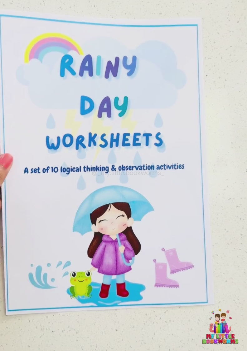 - 1 Printable PDF with a set of 10 rainy day themed-logical thinking & observation activities